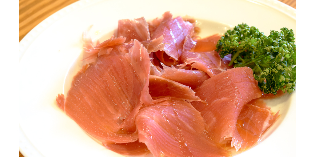 原木からその場で切り分けてくれる生ハムは風味豊か。エキストラヴァージンオリーブオイルをたっぷりかけて。