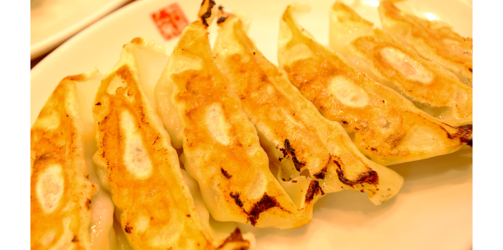 アツアツジューシーな肉餃子(7個入り)でまずは乾杯。ヘルシーな野菜餃子(290円税込)は、特に女性に人気だとか♪