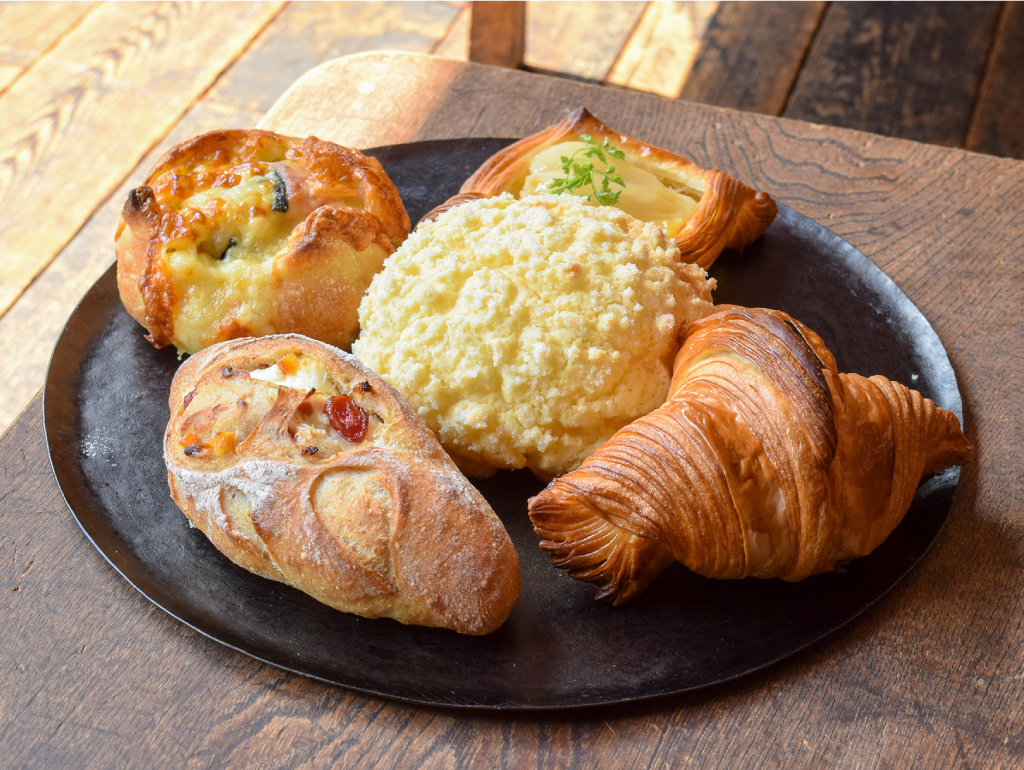 山梨市にある古民家をリノベーションした趣のある佇まい。手入れの行き届いた広い庭が季節ごとに表情を変え、購入したパンは縁側でのんびりいただける。石窯で焼く滋味あふれるパンは外は香ばしく中はもっちり。店内には焼き立てパンの香りが漂い、時間帯や日によって違った種類のパンが続々と焼きあがり、地元客で賑わう。