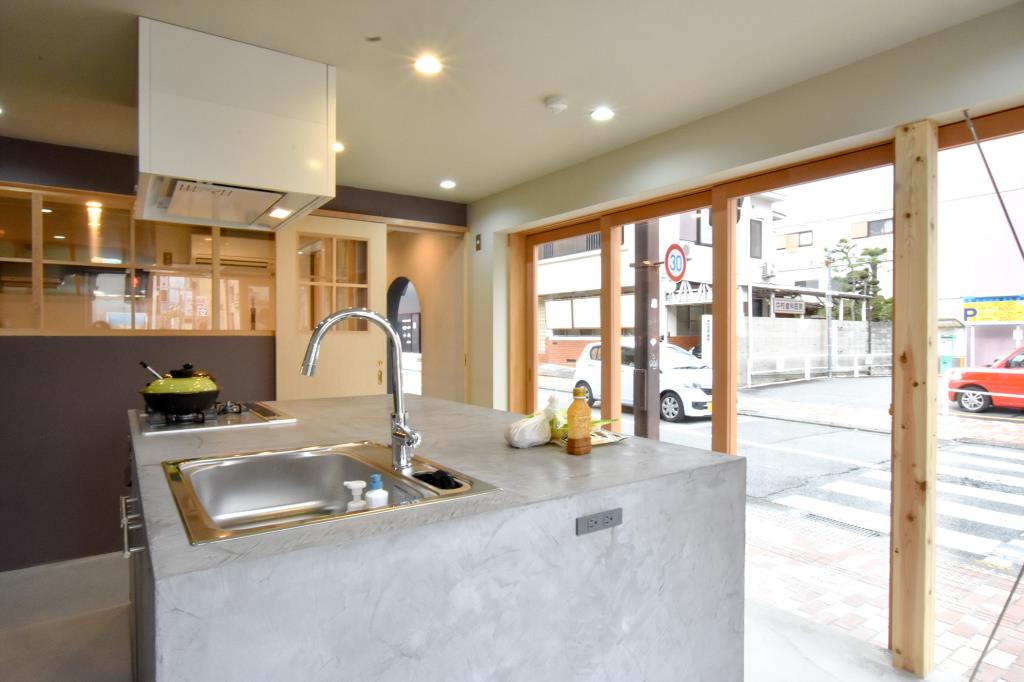 そのコンセプトをもとに、もともとの間取りや建材を活かしつつ、さまざまな目的に対応できるキッチンと、インバウンドを視野に入れた民泊をあわせもった施設を計画。