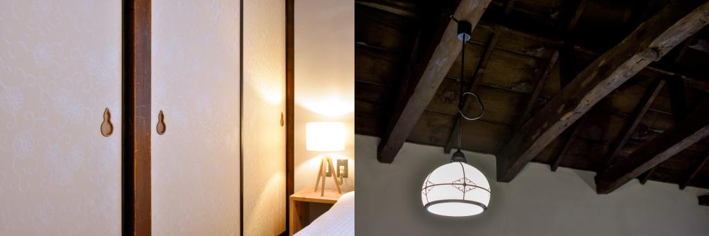 歴史ただよう空間でありながら、襖やランプシェードにひっそりとあしらわれた可愛いモチーフにほっこり。
