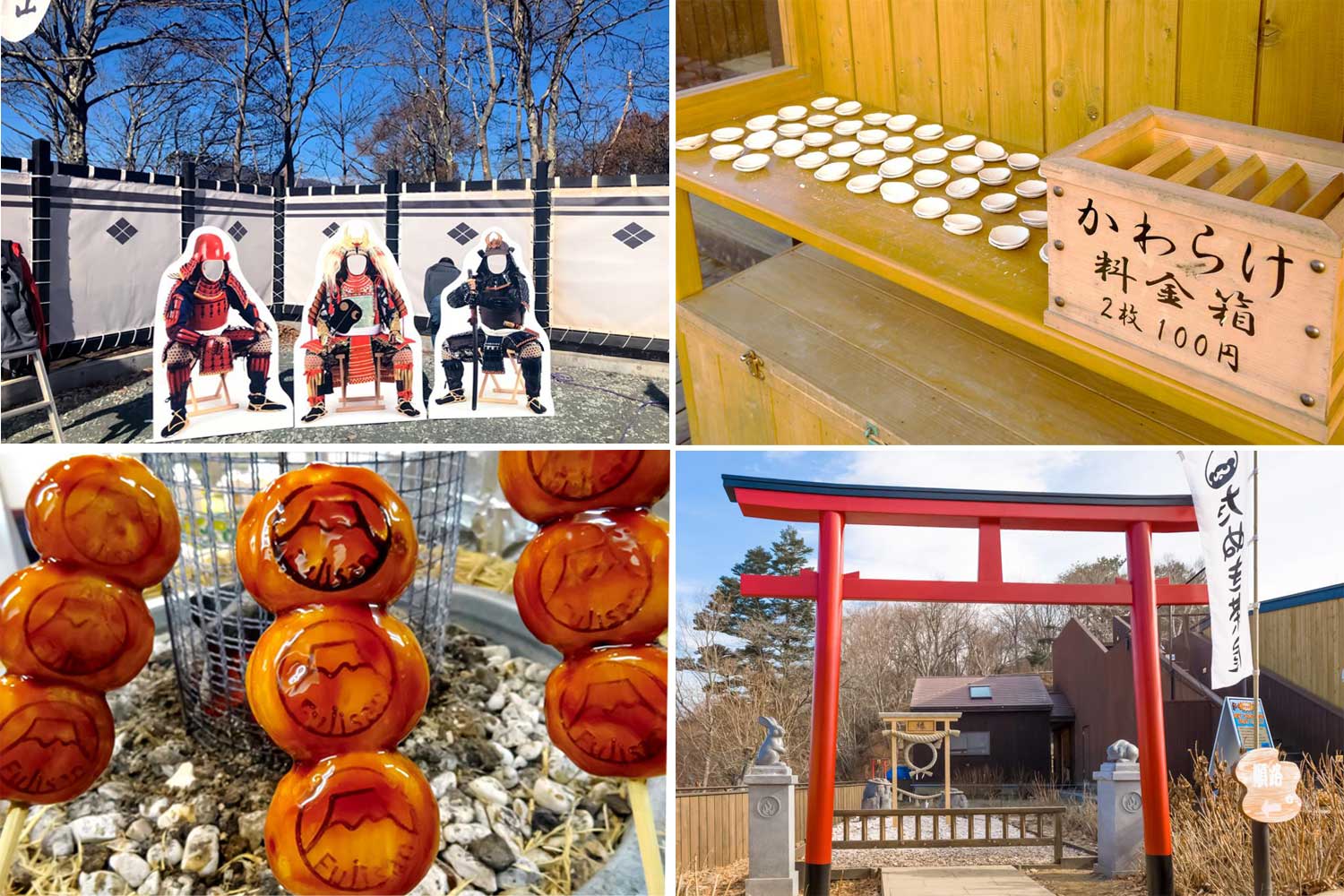 また、絶景やぐら周辺には、武田信玄の陣屋をイメージした「武田信玄の戦国広場」として、武田家の家紋である武田菱の陣幕や鎧具足を着込んだ武田信玄の顔出しパネル等のフォトスポットも登場。