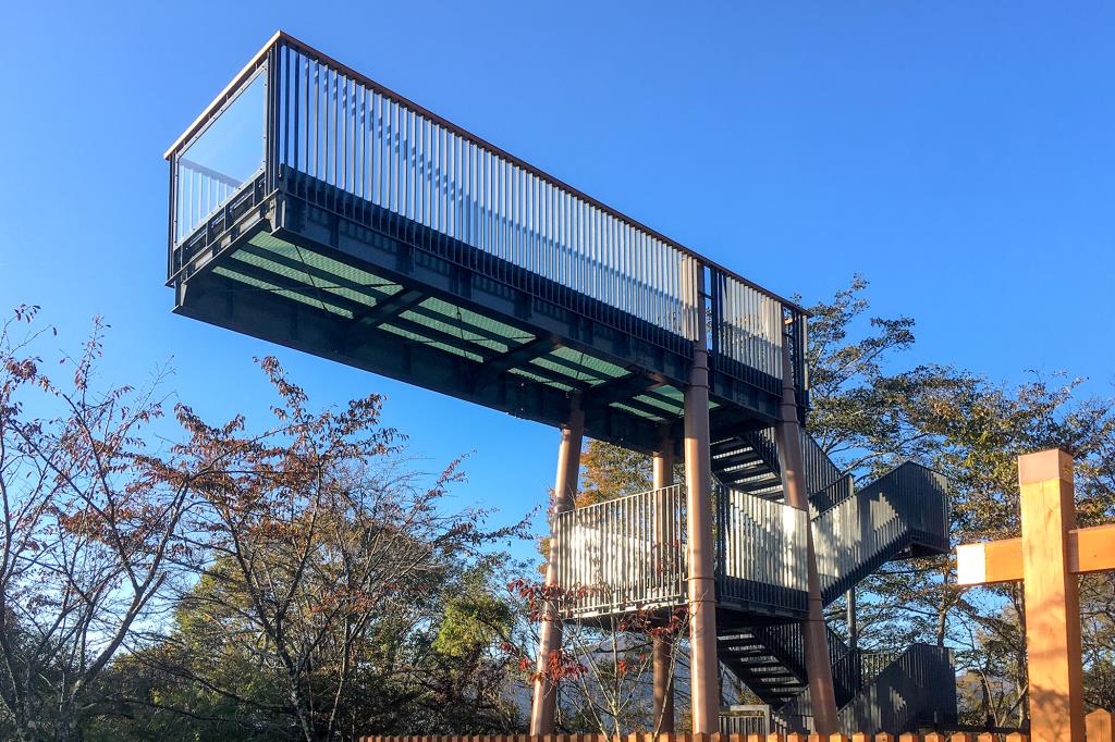 ロープウェイ山頂広場よりもさらに高い標高1,110m地点の崖からせり出す形で建てられたこの展望台。