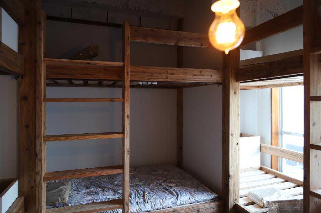 宿泊ルームは2階・3階に5部屋、ベッド数は30を備える。ドミトリータイプから和室まで様々。