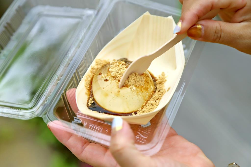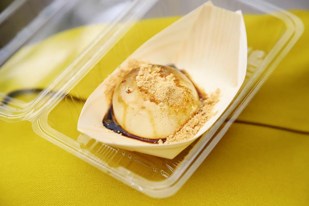 南アルプスの美味しい水を寒天でとじこめ、きな粉と黒蜜をかけていただく。