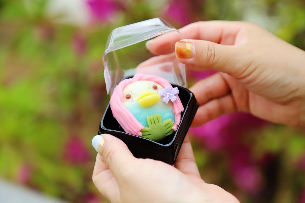 また、疫病退散の妖怪として注目されている「アマビエ」のかわいい上生菓子も。コロナ禍の収束を願い、和菓子職人たちが練り切り餡でつくった目でも楽しめる逸品。350円(税別)。