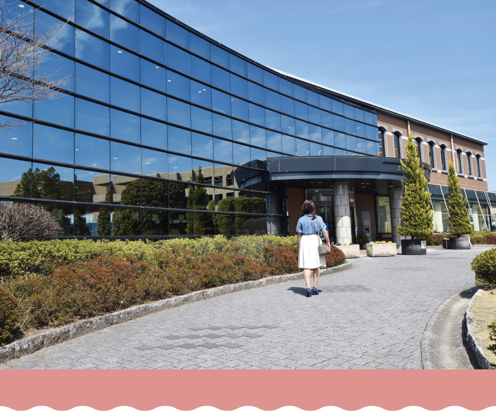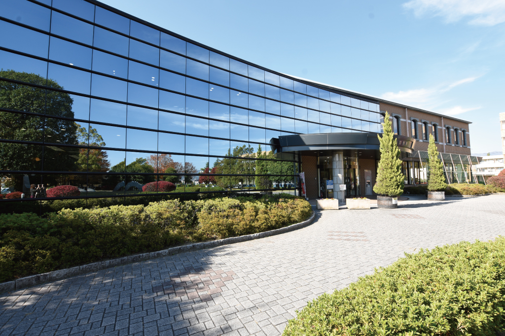 ガラス張りの緑まぶしい竜王図書館。