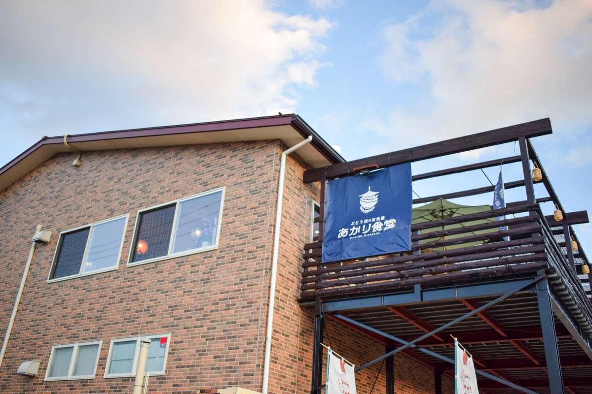 ぶどう畑に囲まれたロケーション抜群に佇む、勝沼ワイン村にある食堂。2024年11月にオープンしたばかりで、昼はもちろん、夜は忘新年会や無尽会などでも楽しめると早くも話題に。夜も昼同様、定食類などがっつりごはんが揃う上、おつまみやお酒も充実するから飲みたい夜にも。