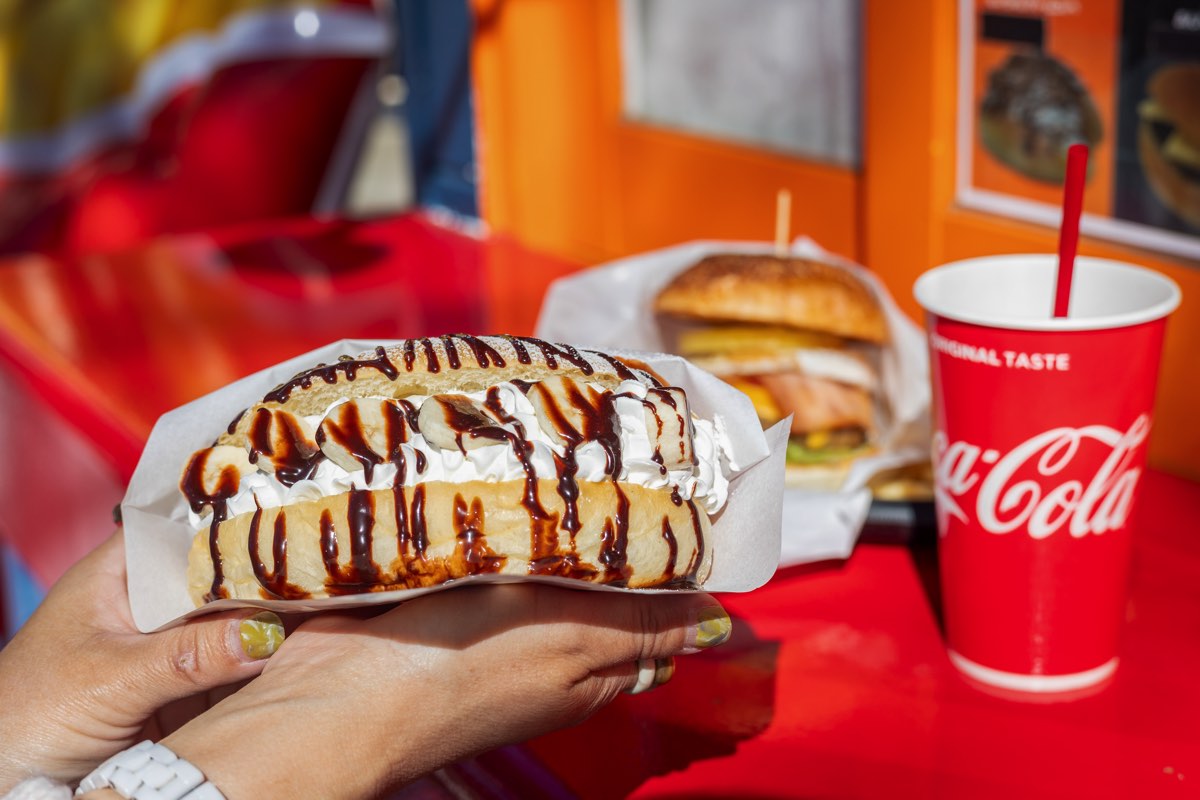 東京で焼きたてパンを移動販売している「エッセンツァイト」のハンバーガーとコッペのお店。第2入園口すぐにあり、とってもフォトジェニック!