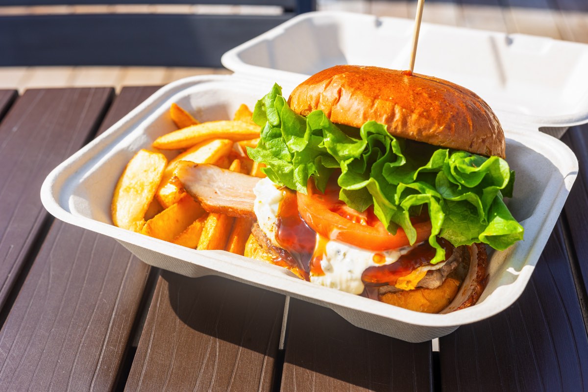 アトラクションになぞらえた名物メニュー「和牛ZOKKONバーガー」は、文字通り和牛100%パティの食感やジューシーさ、旨味を最大限に引き出すため、バンズも専用米粉バンズを使用するというこだわりよう。通常の1.5倍はあるビッグサイズで満足度も高い。