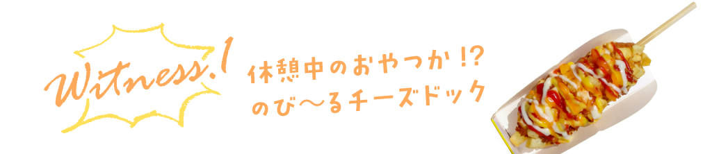 園内に行列発見!これが韓国発・新大久保で大ブレイク中ののびるチーズドック!女子高生に混ざって、なんとNo.1人気のポテトレーラを頬張るスタッフ一人!?しかも5種類のソースを全部がけとは!ん~のびるのびるのび~る!