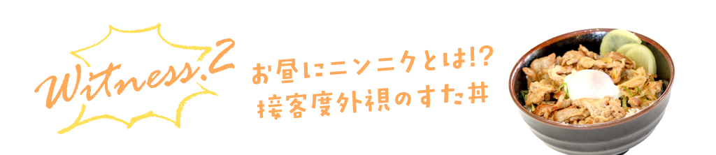ランチタイムに賑わうフードコートに、またもやスタッフの姿!?無心でごはんをかき込むその丼の中身は…ニンニクのパンチが効いた、伝説のすた丼屋監修のオリジナルスタミナ丼。次の日を気にしたら食えない!って、いやいや今を気にして…。