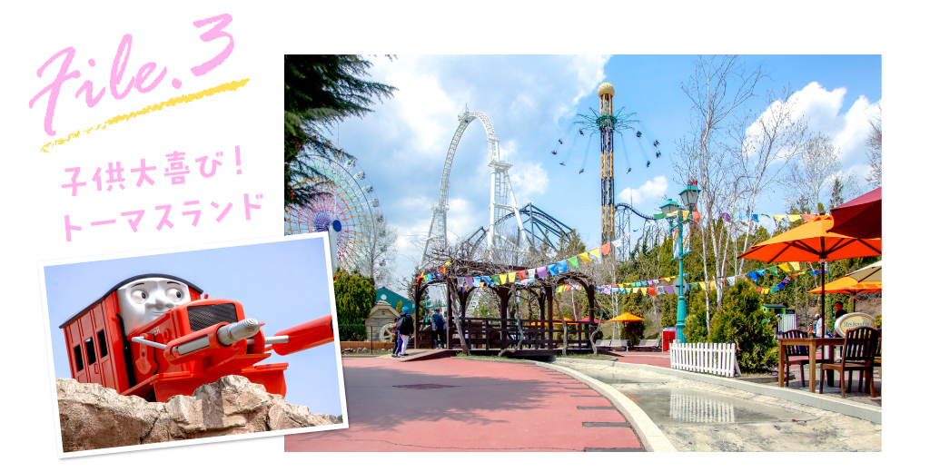 男女問わずの子供達の人気エリア、トーマスランドはただ歩くだけでもテンションアップすること、間違いなし。人気のキャラクターのモニュメントがいたるところにあるから、写真をパチリ。川が流れ涼しげなのも、気持ちいいお散歩をサポートしてくれる。