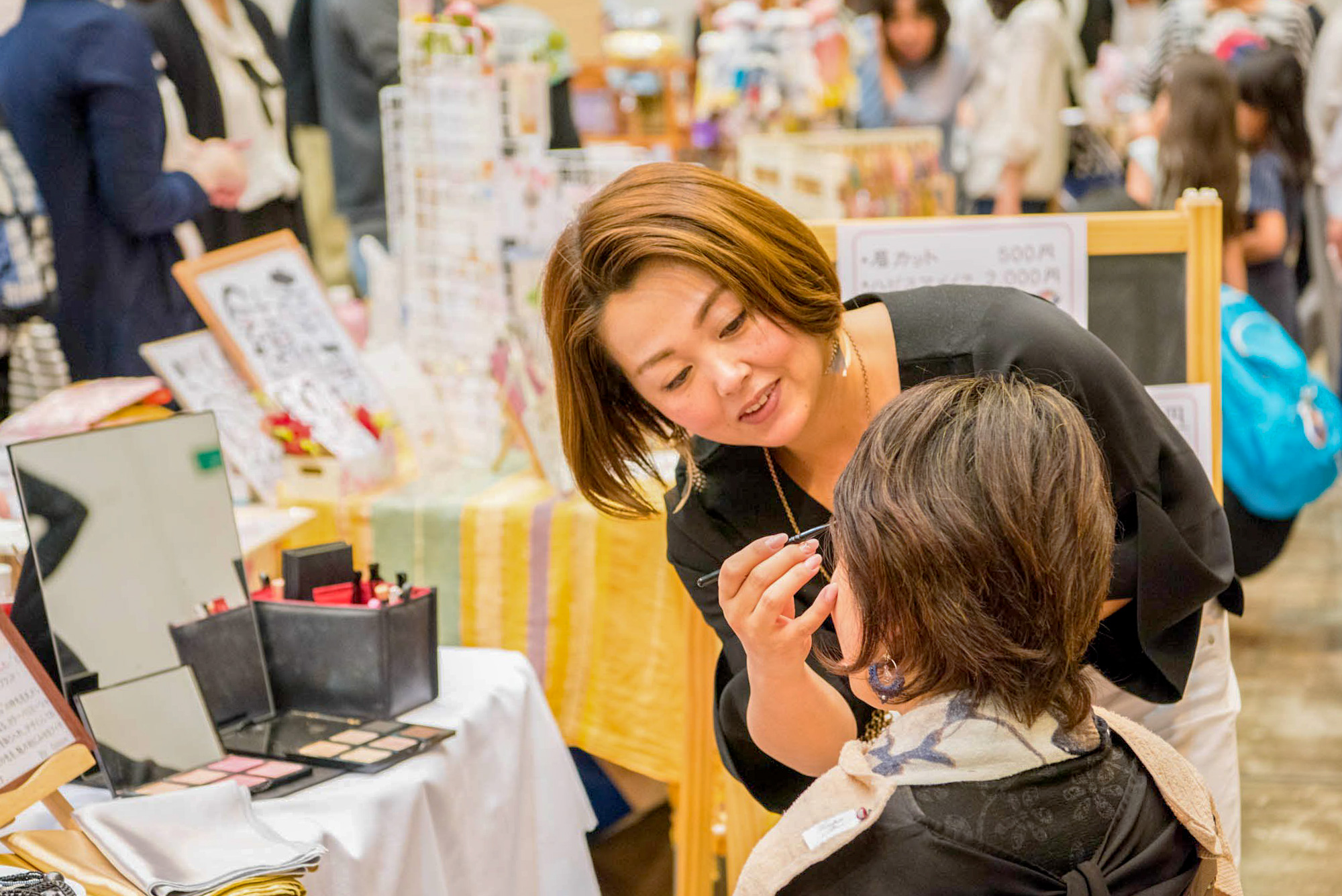 雑貨、アクセサリー、パンや焼き菓子、リラクッスサロンなど、女性ならではの目線のお店が並び、大盛況!ママ達のブースの傍らでは、子供達のお店屋さんも。
