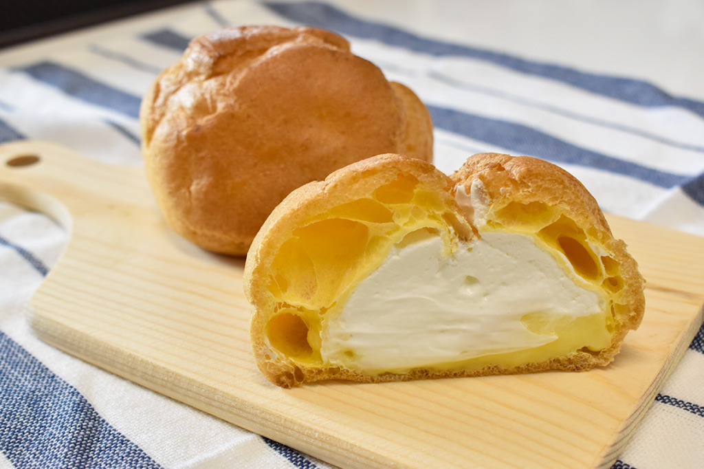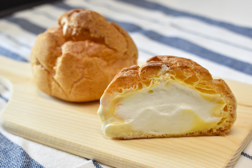 しっかり歯ごたえのあるザ・シュークリーム!シュークリームはシューが命。という方にはぜひおすすめしたいサクふわのちょうど中間のシュー生地。