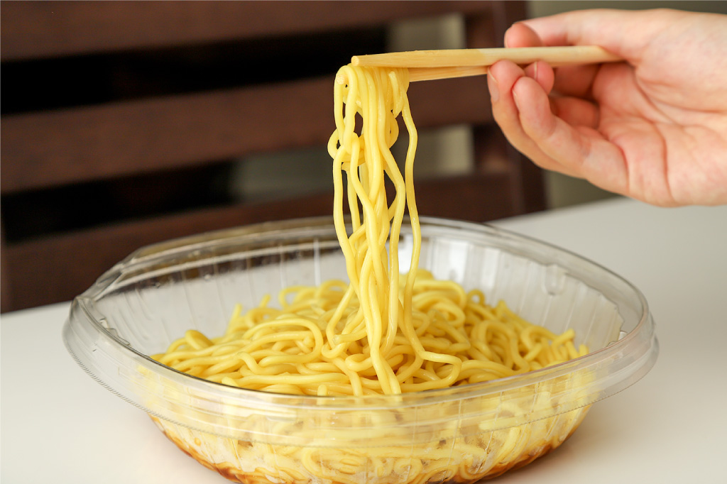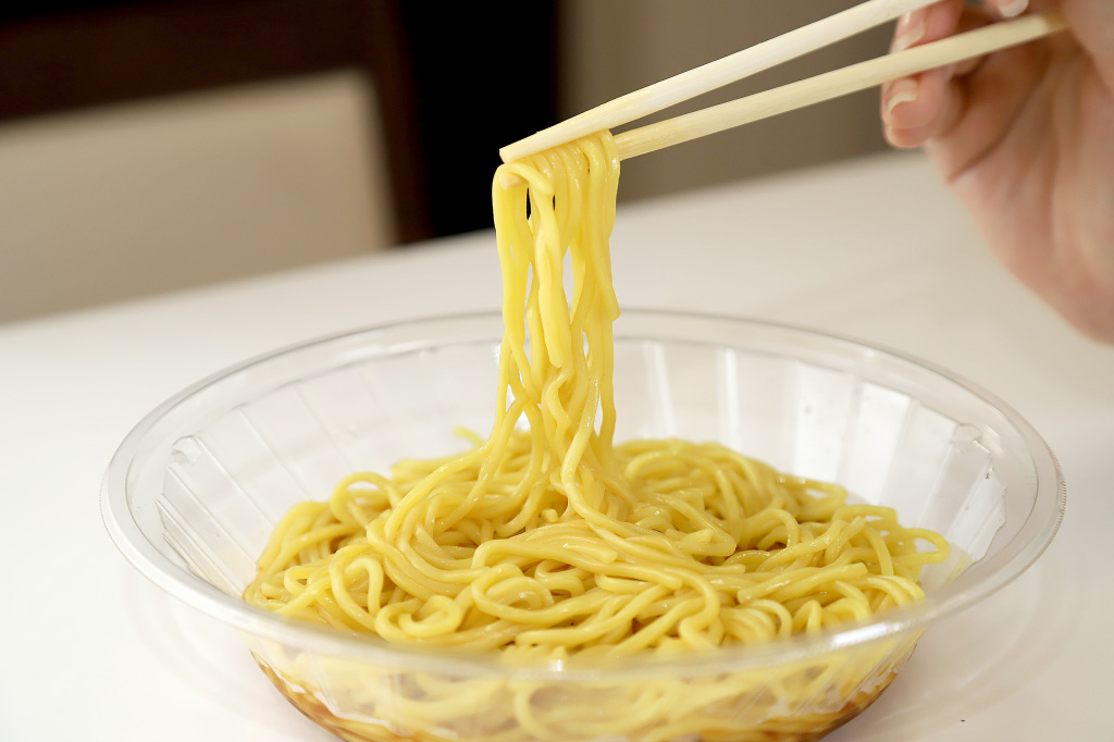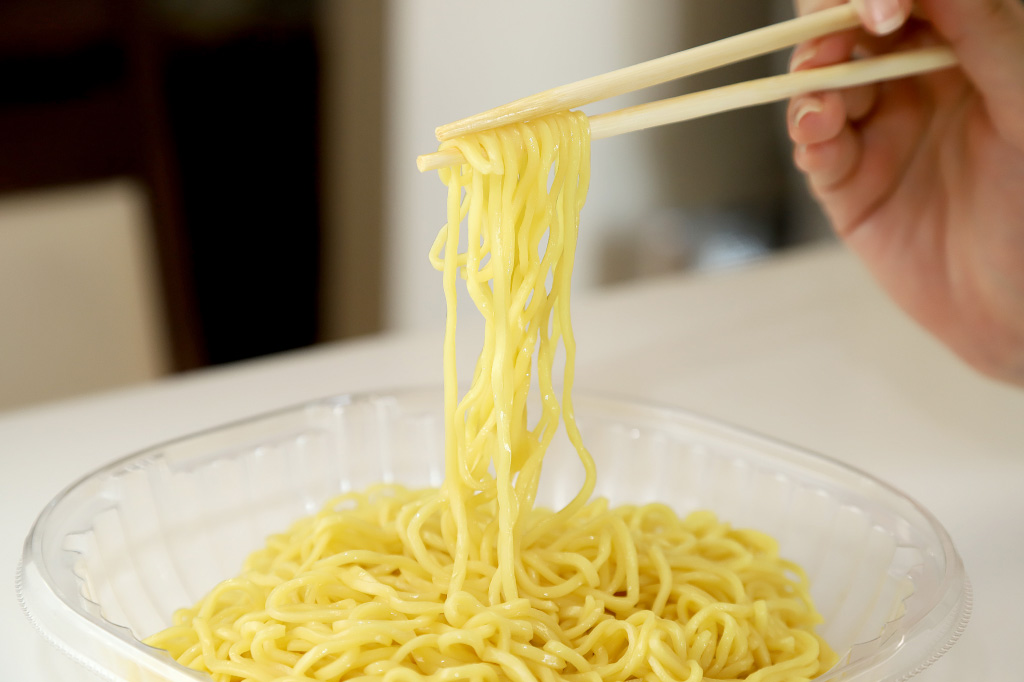 具材は全部で6種類。もやしきくらげはローソンだけ!麺は国産小麦を使用したやや丸みのある四角麺。