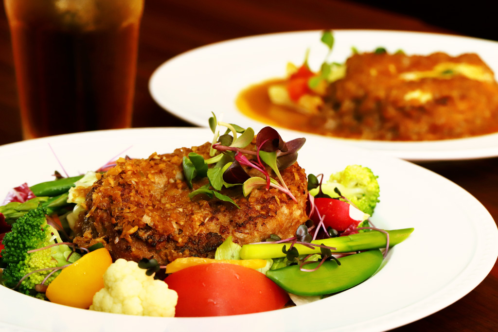 数あるハンバーグメニューの中でも特に人気なのが、『新・和風味チーズハンバーグ』と『たっぷりサラダのハンバーグ~香味ソース~』。