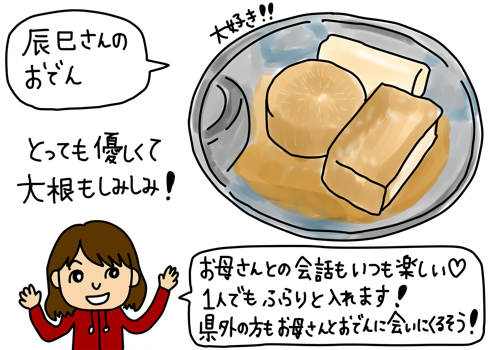 お母さんとの会話と、優しいおでんに身も心もじんわりと温かくなる素敵なお店。