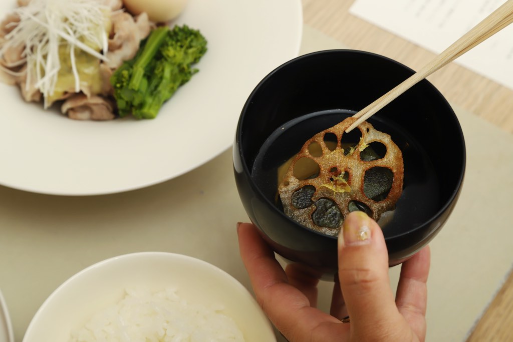 取材日の蓮生麩のお吸い物はほんのりレモンが香り、とっても爽やか~。