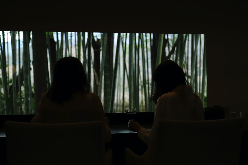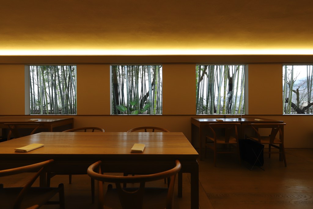 窓の外の手入れの行き届いた庭や深い緑輝く竹林に季節の移ろいを感じ、大地で育まれた旬の素材を生かした料理に舌鼓を打つ。
