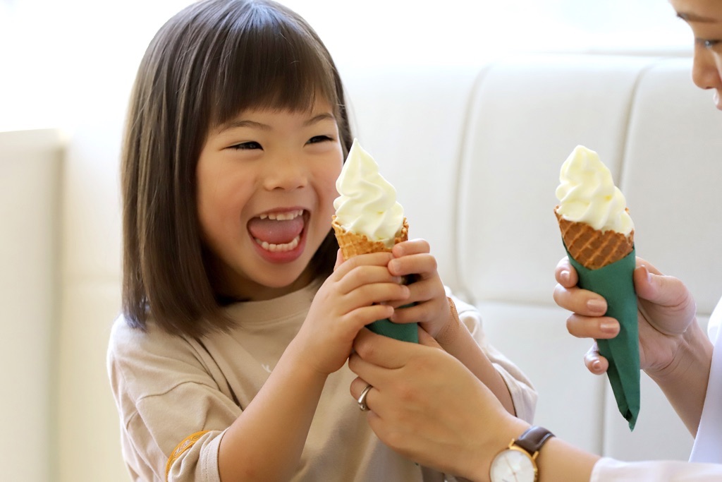 イタリア製カルピジャーニのマシンを使い、空気を含ませながら作った極上ソフトクリームは口どけがよく、なめらかなんだって!