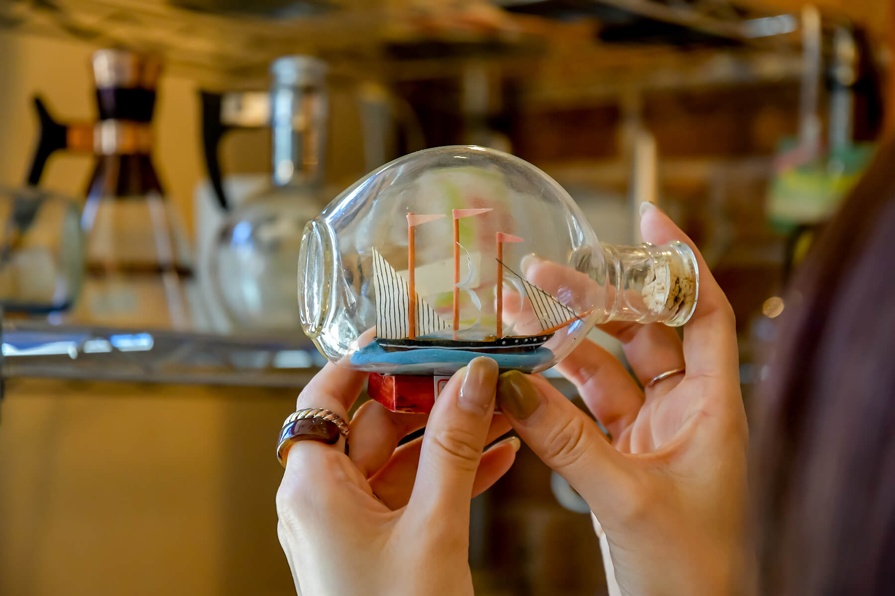 落ち着いた色合いの店内に、アンティークのアメリカ雑貨やインテリアアートが飾られている。しかも、これらは購入できるみたい。