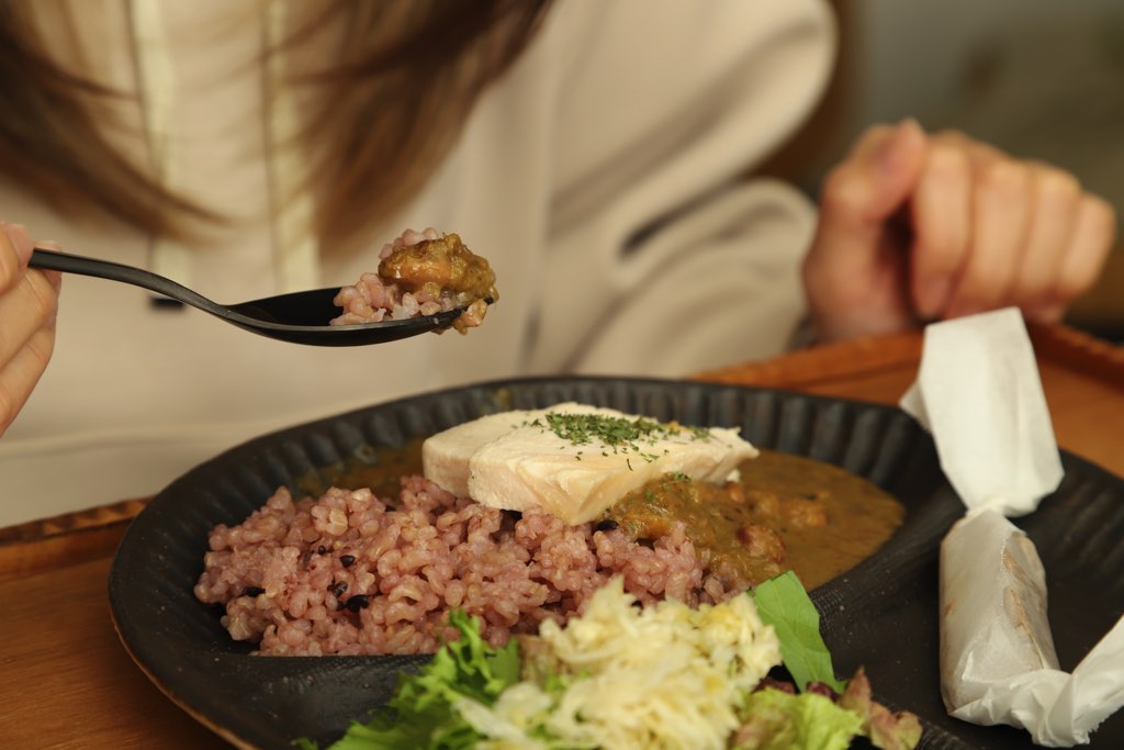 診断結果を踏まえて、オーナーが選んでくれた今日のランチはルンダン風カレープレート!