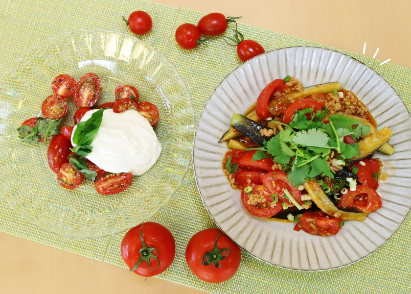 皮が薄くて柔らかな肉質の中玉トマト。トマトの赤い成分「リコピン」は油に溶けやすい性質で、油と一緒に食べると体内への吸収率がアップ!いつもの麻婆茄子にトマトをプラスすると、さっぱりした酸味で食欲がすすむ一品に。