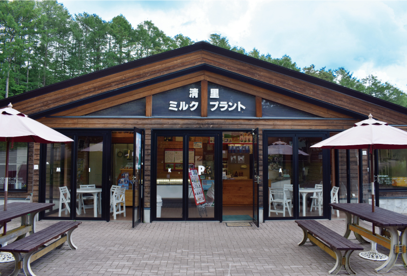 清里【ともにこの森】内にあるミルク工房。清里ミルクプラントで加工される乳製品は健康な乳牛から搾られた牛乳が使用されている。低温殺菌して自然の風味を生かした牛乳は高脂肪にもかかわらずさっぱりと美味しい。生乳100%で作ったソフトクリームもおすすめ♪