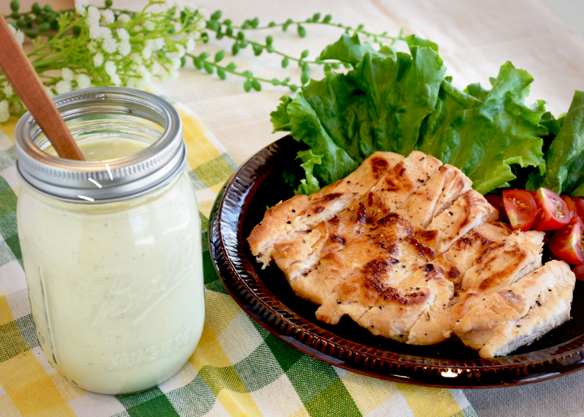 七賢の「塩糀」は米糀独特のまろやかな甘味と、天日塩の深みのある塩味が特徴。パサパサ感が強い鶏胸肉も塩麹の力で柔らかく、旨味をぐっと引き出してくれる。