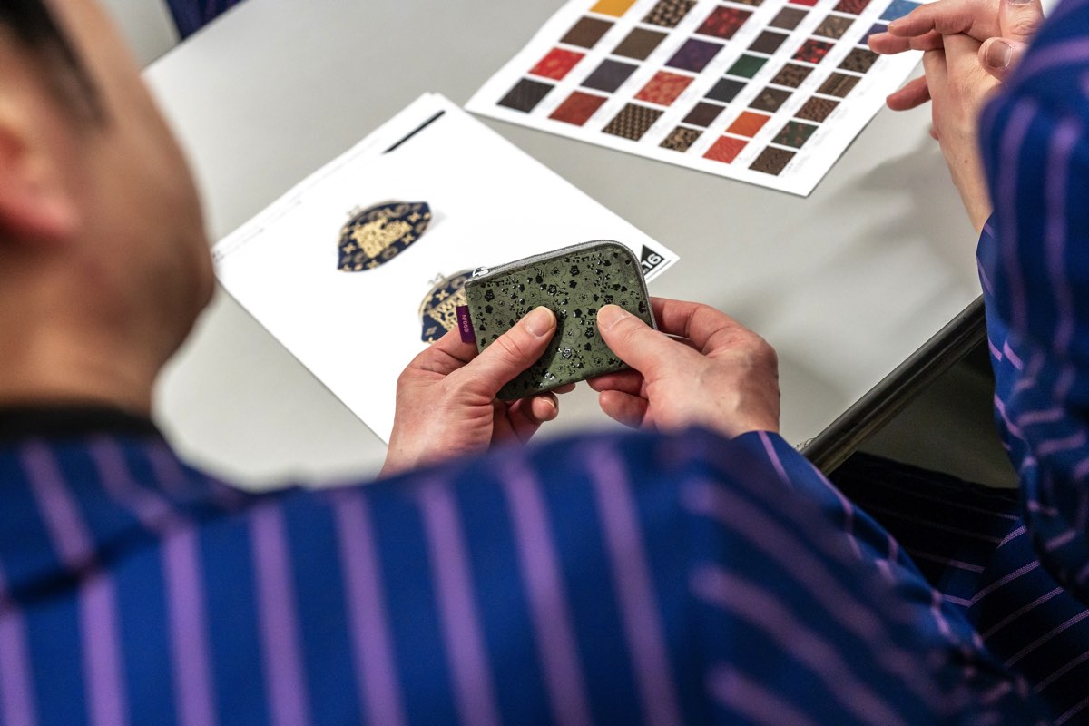 印伝は鹿の革をなめして加工し、漆で模様づけする。この技法こそが、鹿革独特の軽くて柔らかな風合いと漆の上品さを引き立てるのだ。