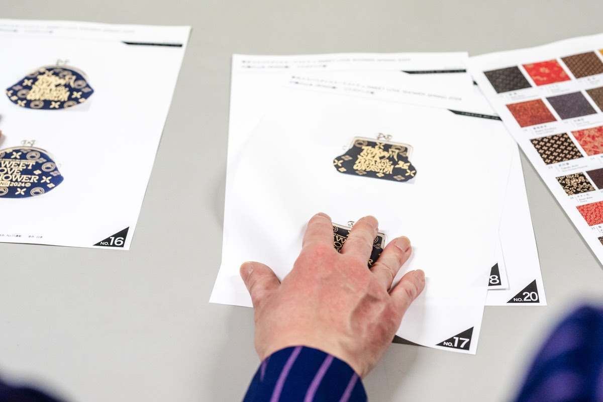 今回のフェスオリジナルグッズは、コインケースに東京スカパラダイスオーケストラのロゴを大きくメインにあしらうことで全員一致。 “スカパラ”といえば、楽器を演奏して様々なパフォーマンス繰り広げるのが魅力ということで、それぞれの楽器モチーフを規則的なパターンの漆柄に…と意見が飛び交う。