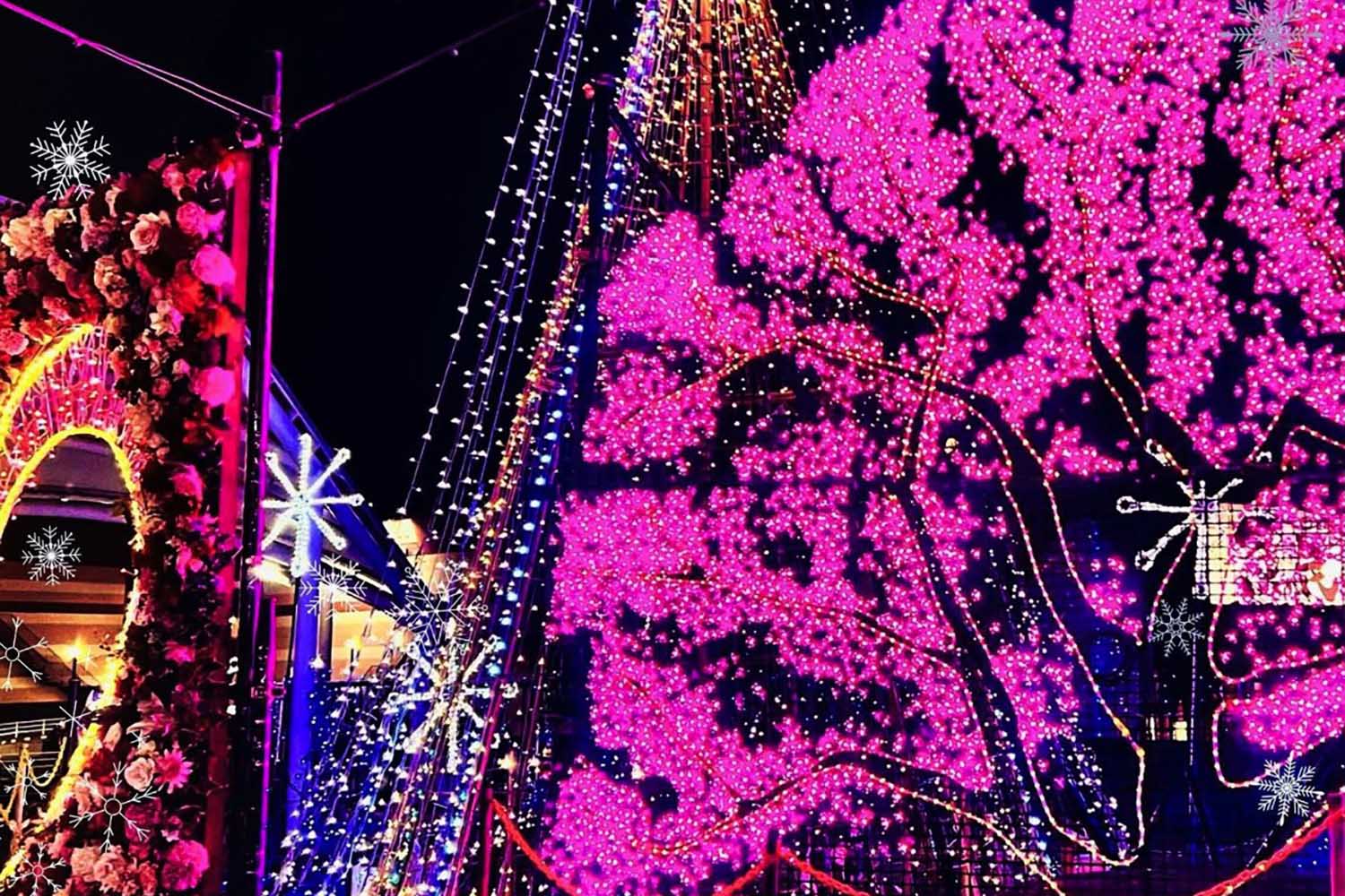 まるで満開の桜のように華やかで非日常的な輝きを放つイルミネーション