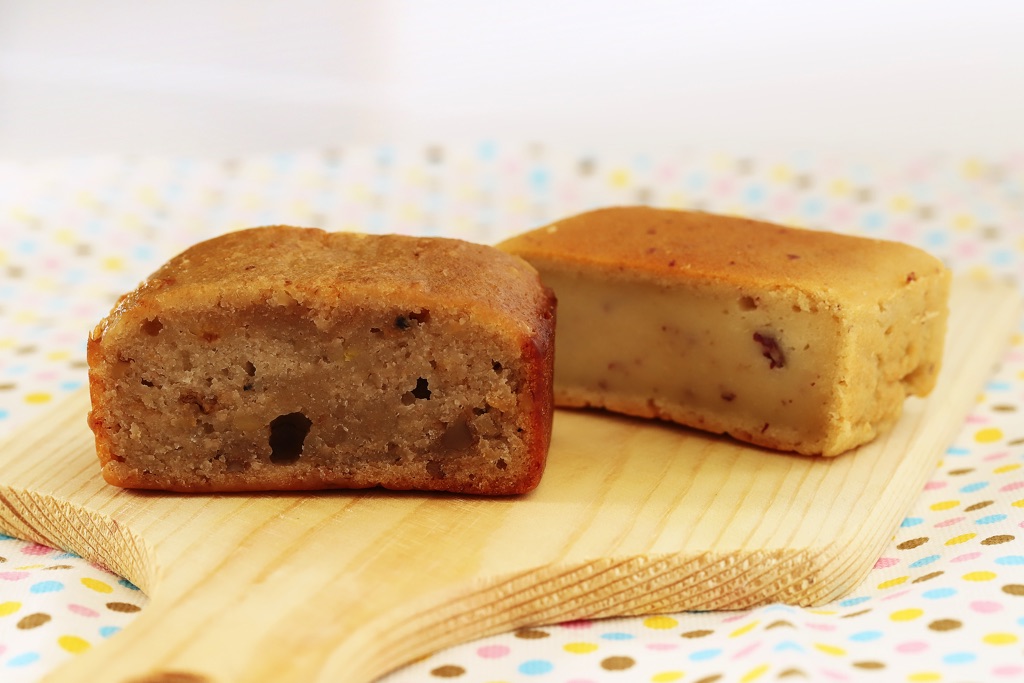 米粉、アーモンドプードル、なたね油、豆乳、ペーキングパウダーを使い、しっとりとした舌触りで、おやつにピッタリ♪