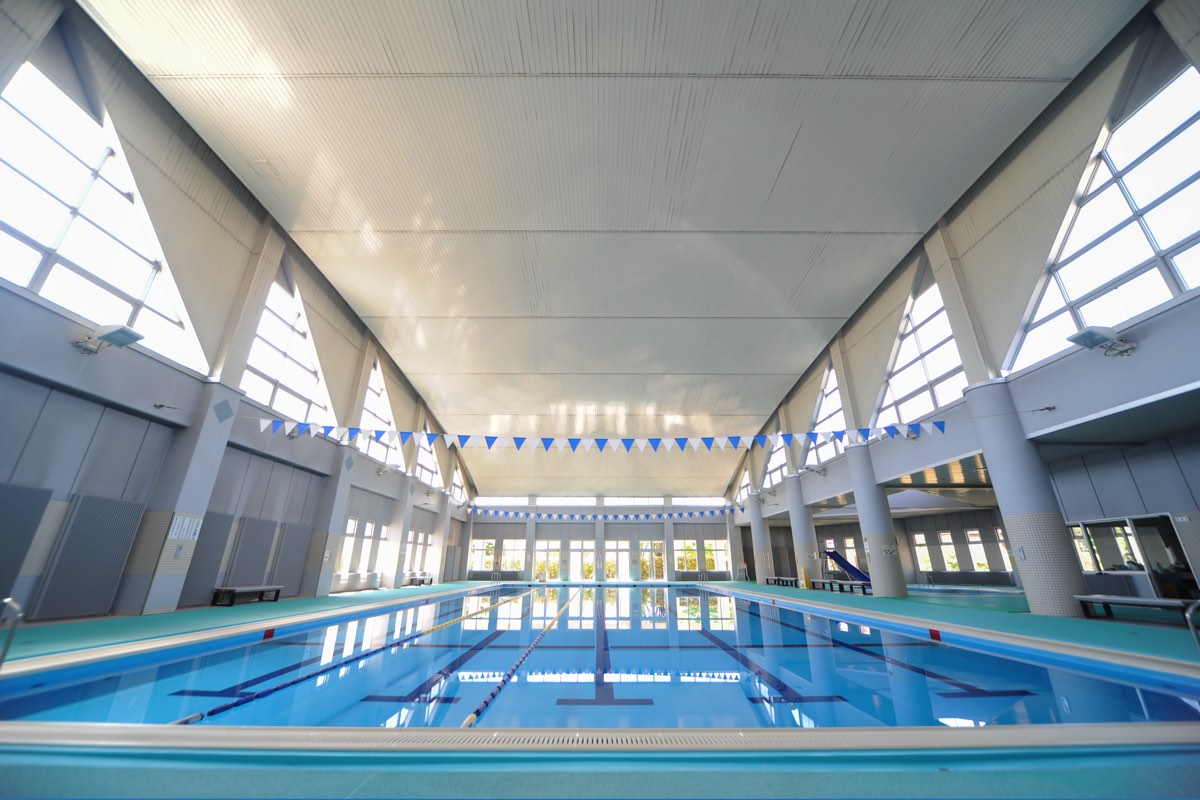 プールは50mプールが9レーン、25mプールが7レーン、幼児用プールを完備。