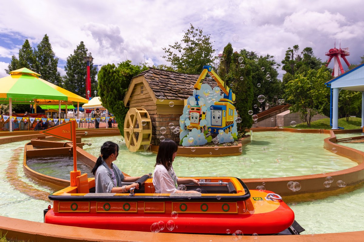 たくさん踊って熱くなったあとは「トーマスとバブリースプラッシュ」へ。こちらはボートに乗り、水の上を進みながらトーマスの世界観を味わえる。