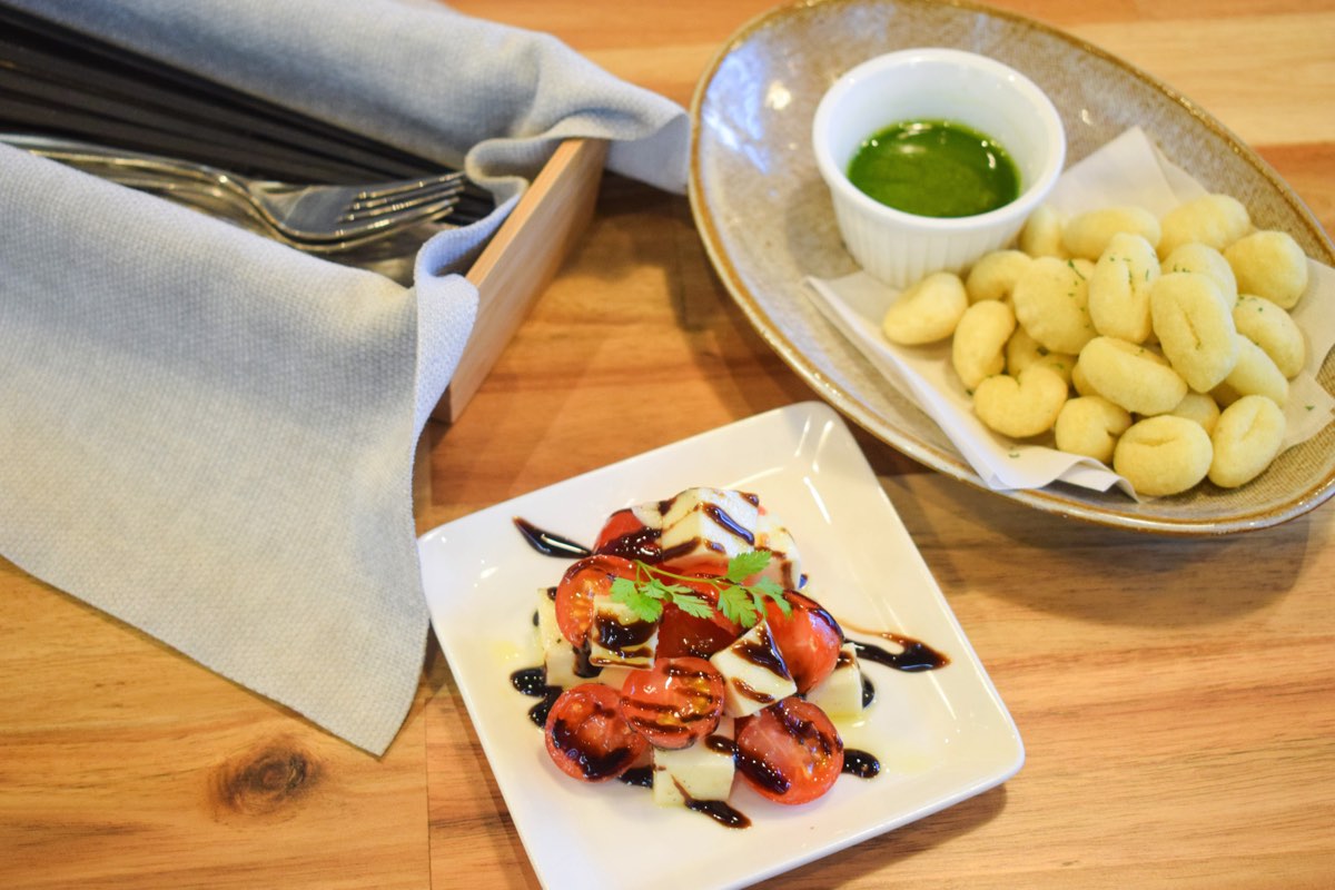 そのほか、バジルソースに麹とほうれん草でアレンジしたニョッキフリットや無花果のバルサミコソースが絶品のカプレーゼなど、大人も子どもも楽しめるサイドディッシュが充実する。