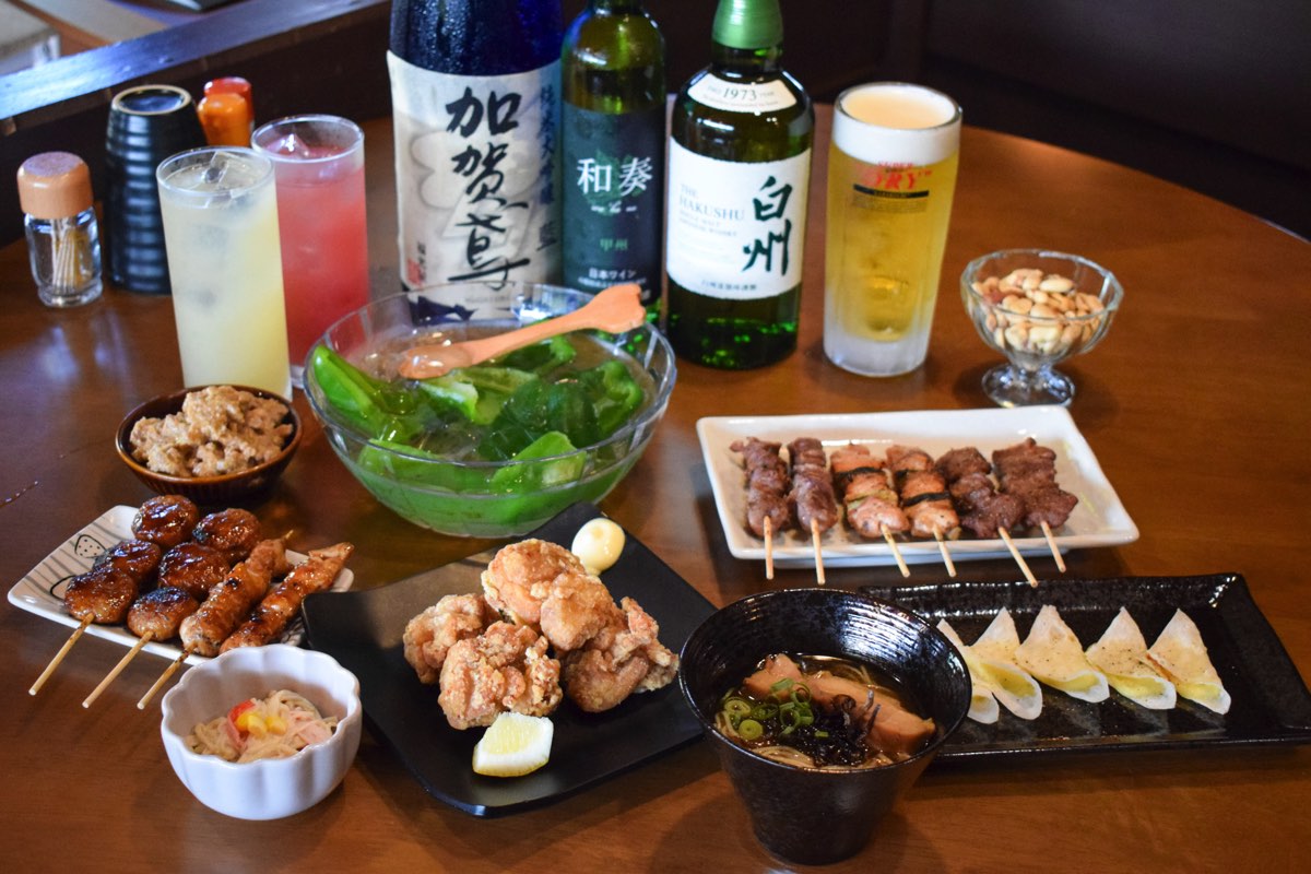 炭火で焼く焼鳥やカリッカリに揚げた唐揚げなど、豊富なメニューを揃える中、おすすめは〆メニューの「ラーメン風そうめん」!鶏出汁のスープと塩昆布の相性抜群で、優しい味が〆にぴったり~。また、キッズメニューには甘口カレーもラインナップする。
