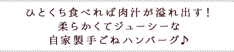 BRU助自慢の自家製手ごねハンバーグは、あっつあつを鉄板で提供。柔らかくてジューシーなハンバーグは、大人も子供も大好きな味。デミグラス・トマト・和風おろしの3種類から選べるソースは、どれを選んでも間違いなしの美味しさ。ランチはもちろん、ディナータイムにも同じ味を楽しむことが出来るのも嬉しい。