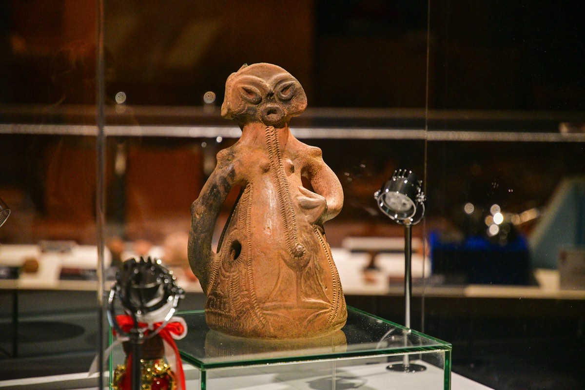 2階展示室にある「円錐形土偶」は、こちらを象徴する所蔵品のひとつであり、必見の展示。妊婦を模していることから、通称「子宝の女神ラヴィ」とも呼ばれ、隣に鎮座する「人体文様付有孔鍔付土器ぴ~す」とともに日本のみならず海外でも高い人気を誇る。