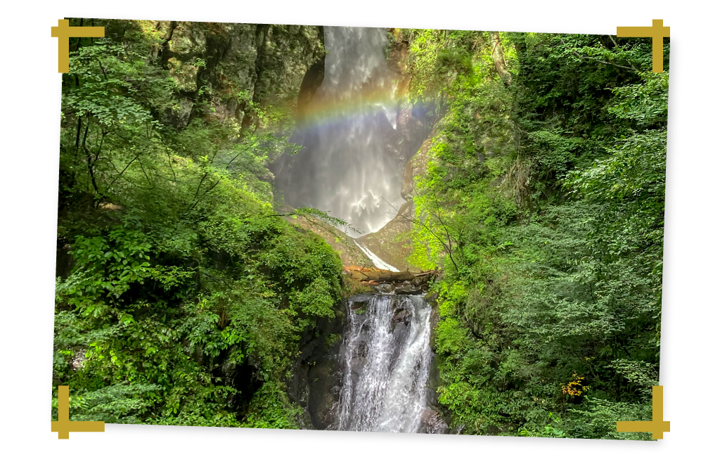 高さ30mの大滝。夕方に訪れると出会える美しい自然の芸術
