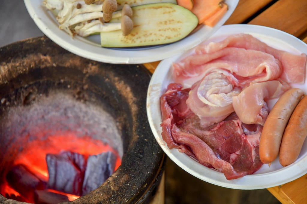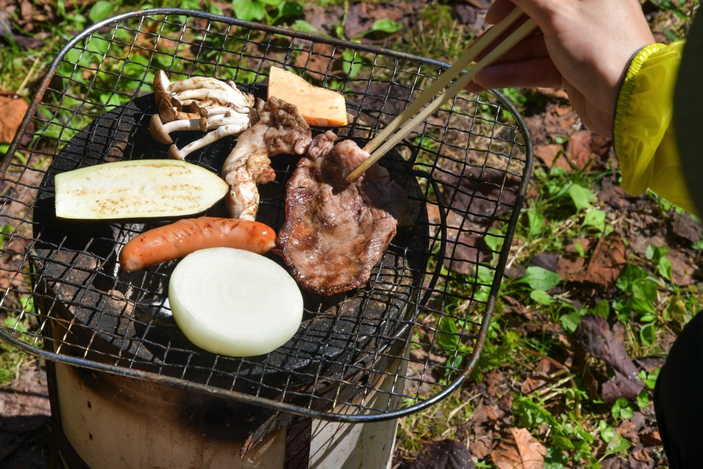さて、お待ちかねのお昼ごはんは、七輪で楽しむソロBBQや山梨県産の食材をふんだんに使ったほうとうを堪能できる。必要な道具や食材はすべて準備してくれるので手ぶらでOK!