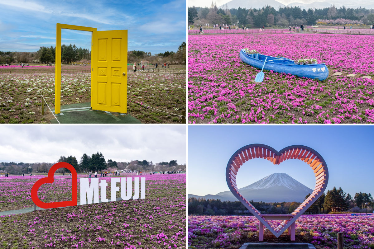 昨年に引き続き、SNSを賑わせたフォトスポットも健在。「富士芝桜まつり」の話題の2台フォトスポット、扉の向こうに富士山と花畑が広がる「幸せの黄色い扉」に、新カラーにリニューアルした「ピンクの海を旅する小舟」。そして、2025年は新たに「Mt.fujiオブジェ」や「恋するハートのベンチ」が登場!パワーアップした可愛いスポットで、記念撮影しよう。