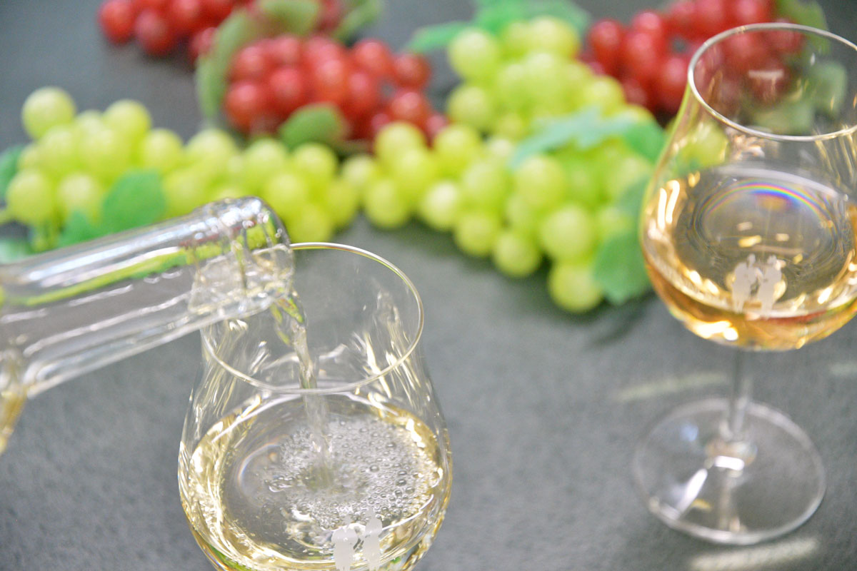 大粒ぶどうピオーネを100%使用したデザートワイン。強烈な果実香りと甘さが気分を上げてくれる。