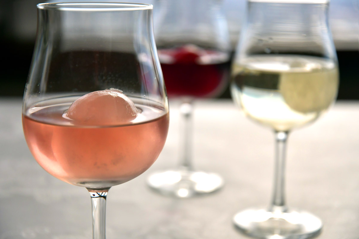 夏ワインの新定番といえば、ワインに氷を入れる冷え冷えロックの“氷ワイン”。氷を入れるだけだと薄まってしまうが、ワインを凍らせてワイン氷を作っておけば、味が変わる心配もなし。いろいろな形を楽しめる製氷皿で見た目も可愛くすれば、それだけで気分が上がっちゃう。丸氷を浮かべ、ウイスキーグラスでワインを楽しむのもあり!