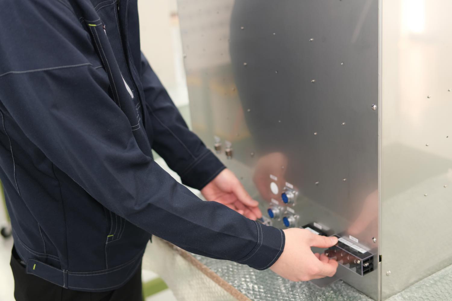 組立・圧着・半田・繋ぎこみ・検査と作業内容は電子機器と変わらないものの、アルミフレームやサイズの大きい製品なども幅広く製作しています。
