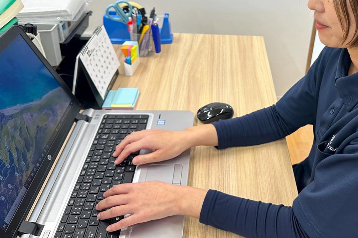 それ以外にも社員のお給料や健康管理などもサポートしています。会社の窓口でもあるなかで常に「笑顔」は心掛けています。