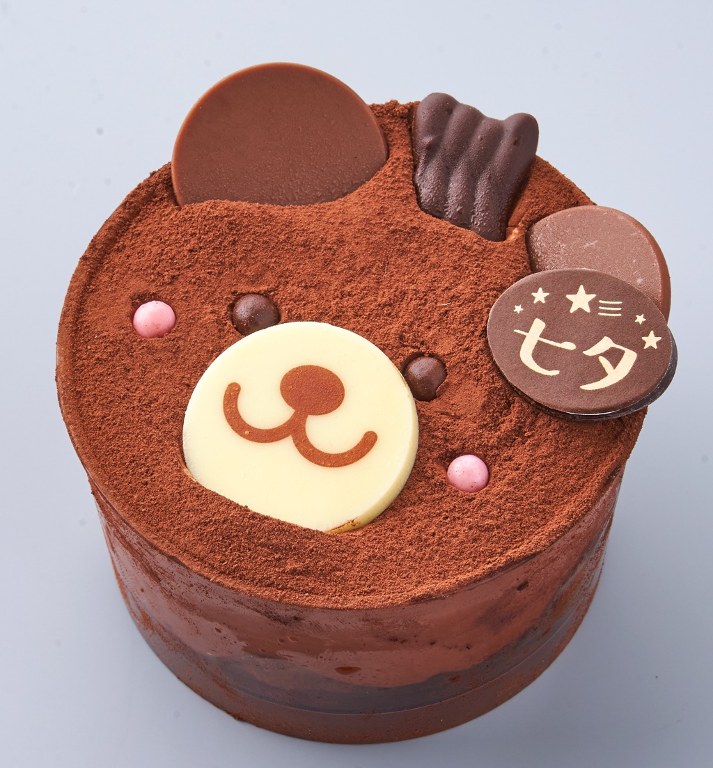 チョコスポンジにチョコチップを散りばめ、たっぷりのチョコクリームで包んだかわいらしいくまのチョコレートケーキ。