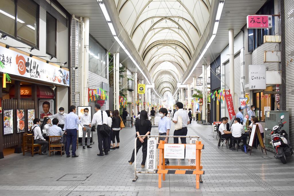 3密を避けて気軽に飲食や買い物を楽しめるようにと社会実験を目的として企画された「甲府まちなかテラス@銀座通り」が昨日7月1日よりスタートした。