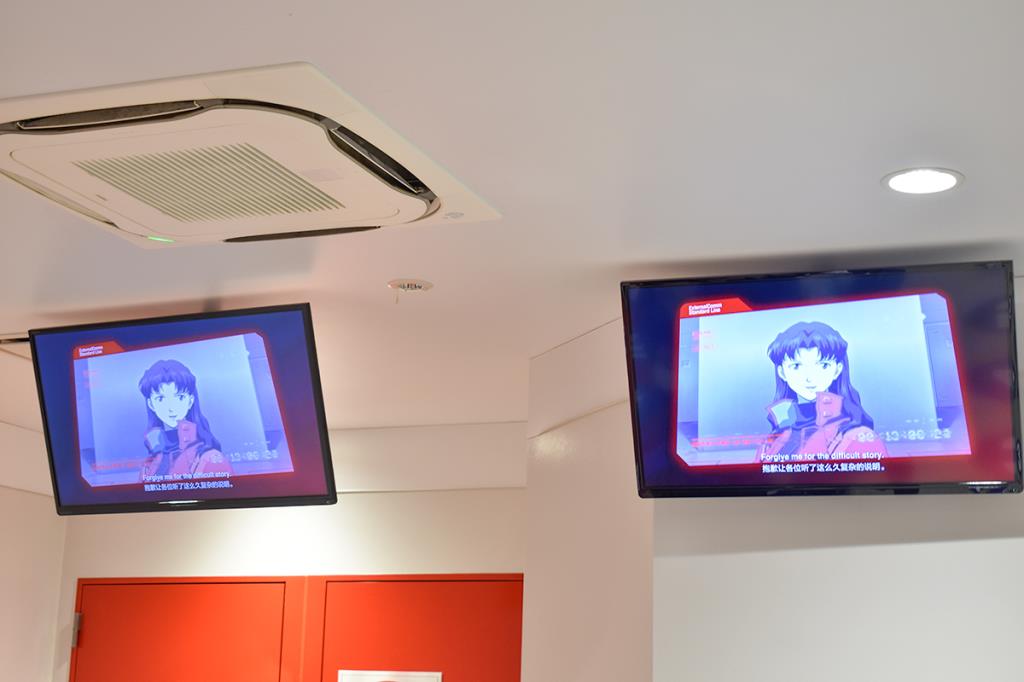 富士飛行社は、吊り下げ式のライドにのって、座席を包み込む巨大スクリーンに映し出された富士山飛行を臨場感たっぷりに楽しめるフライトシュミレーター型アトラクション。今回は、フルCGで、迫力満点の「ヱヴァンゲリヲン新劇場版」の世界へと没入できる。